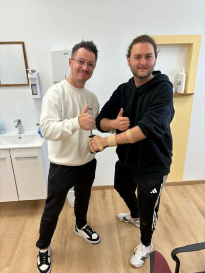 Claudio Schley, unser Ergotherapeut aus Rehau mit Spezialisierung auf Handtherapie, war für drei Wochen bei uns in Weingarten zu Gast. Während dieser Zeit hat er gemeinsam mit dem Team die Abläufe der ASR und HSR intensiv kennengelernt und vertieft. Dabei setzte er sich engagiert mit den therapeutischen Konzepten auseinander, brachte seine fachliche Expertise ein und bereicherte den interdisziplinären Austausch.
