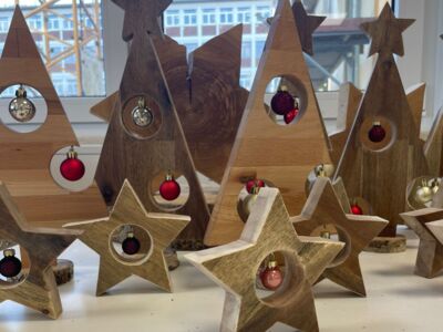 Auch im ASR in Weingarten kann man langsam erkennen, dass Weihnachten immer näher rückt. Die Stimmung macht auch vor den Patienten in der Werkstatt nicht halt. So entstand in den letzten Wochen Weihnachtsschmuck, der jetzt unser ASR passend zur Jahreszeit verschönert.